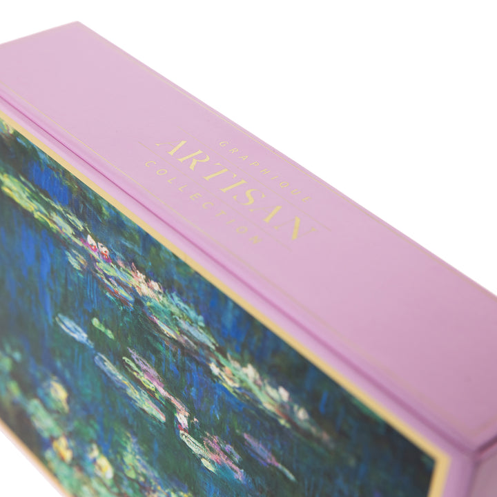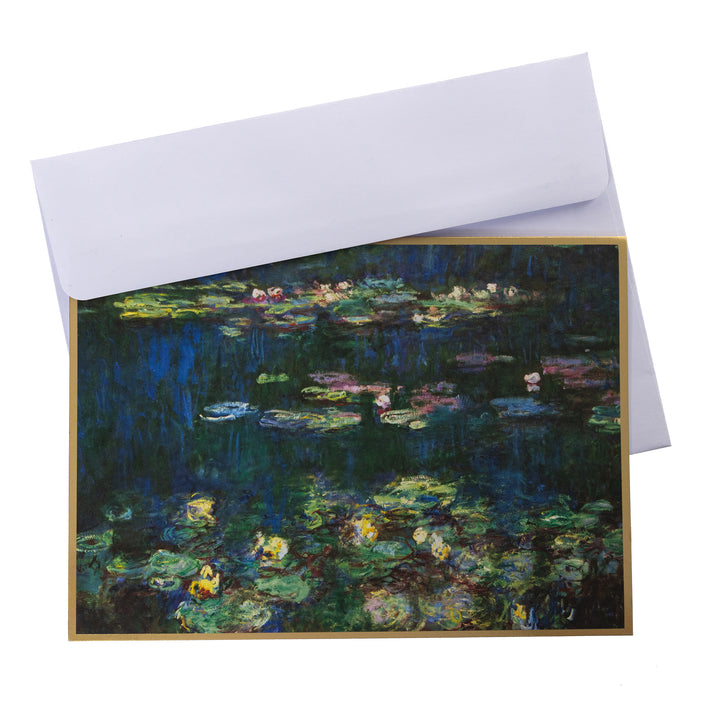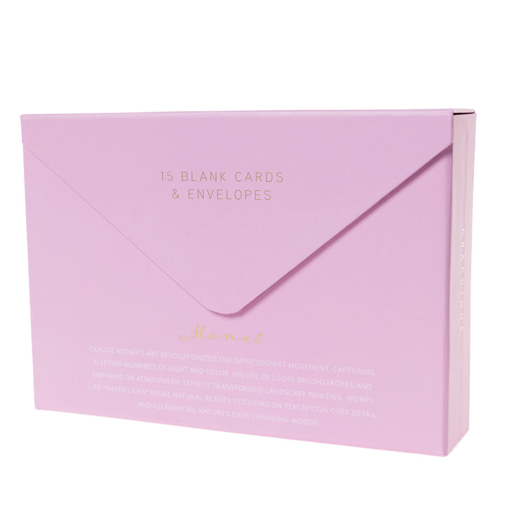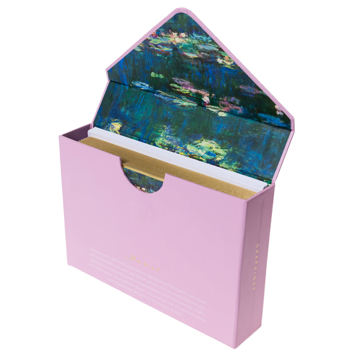 An Impressionist masterpiece, made personal. This boxed card set features Claude Monet’s Water Lilies, a luminous tribute to the tranquility of nature and the fleeting beauty of light. Reproduced in stunning detail, each card captures the painterly softness and serene elegance of Monet’s garden at Giverny. Ideal for thoughtful correspondence, this set brings timeless art to every handwritten note.