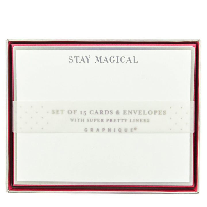 It's time to send some glam mail! Lined with foil on the inside for some added flair, our Stay Magical Flat Notes are the most fashion-forward greetings your recipients will ever open!