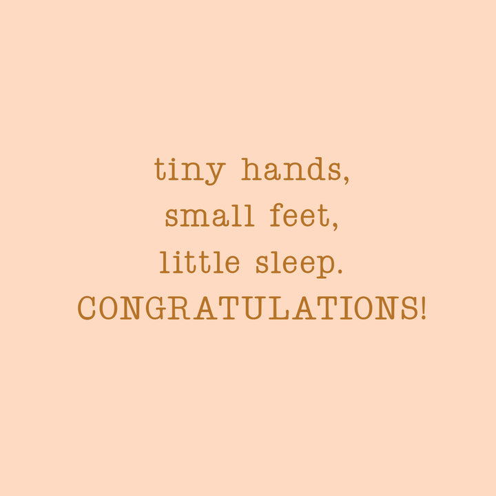 - Inside Greeting: tiny hands, small feet, little sleep. CONGRATULATIONS!
