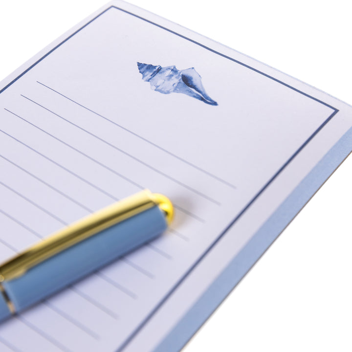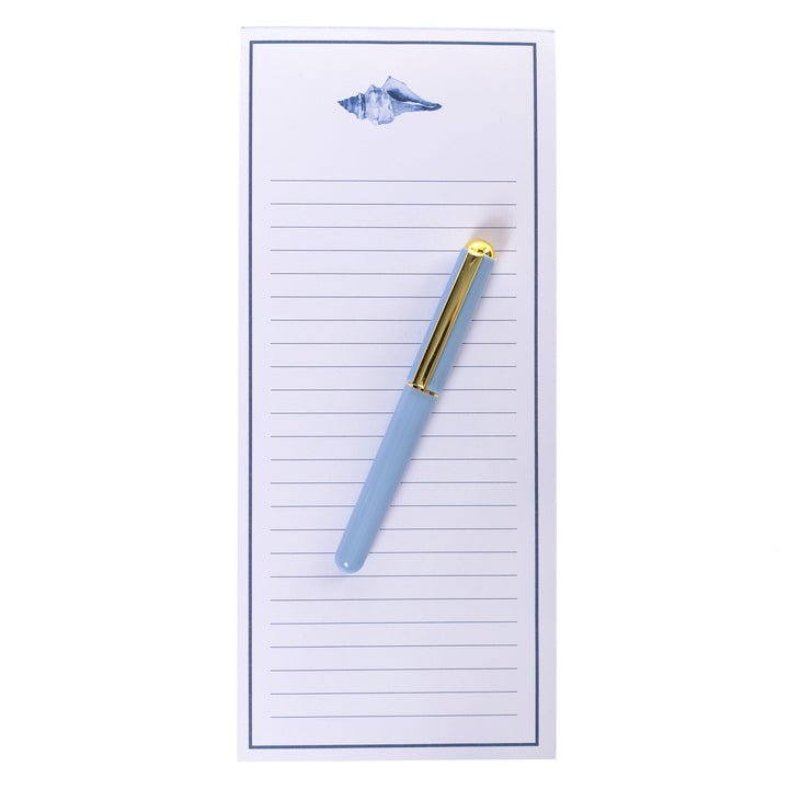 Coastal notes with a splash of charm. This magnetic notepad and pen set features a soothing blue watercolor conch shell icon—bringing breezy, beach-inspired vibes to your everyday lists. With a coordinating pen and magnetic backing, it's perfect for jotting reminders, grocery needs, or sunny-day dreams. Practical and peaceful, it’s a little escape with every note.