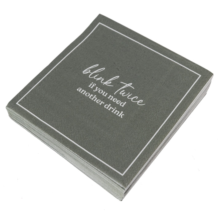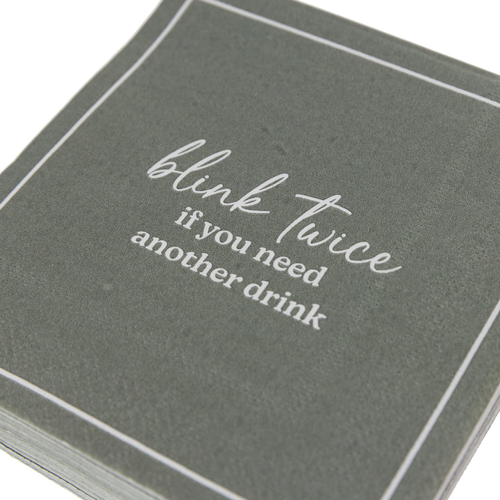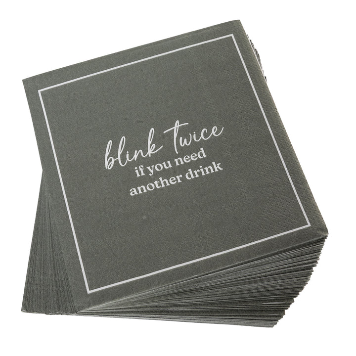Add a splash of humor to your happy hour with our “Blink Twice if You Need Another Drink” napkins. Whether you're mixing cocktails or hosting friends, these cheeky napkins are the perfect conversation starter. Stylish, sassy, and ready to entertain—don’t host your next party without them!